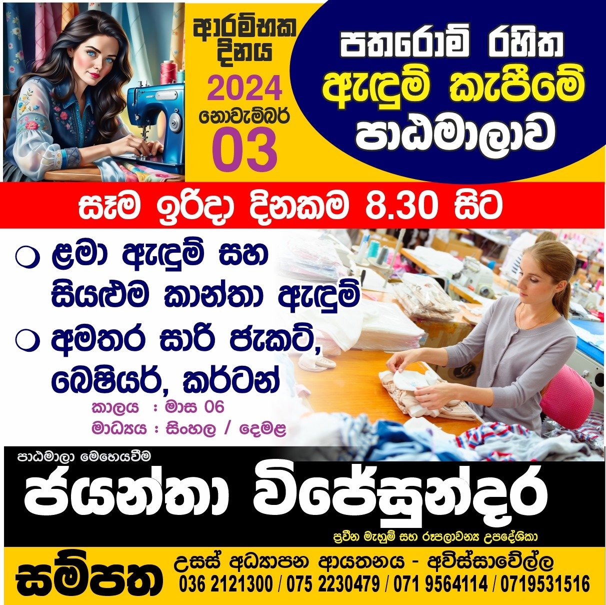 පතරොම් රහිත ඇඳුම් කැපීමෙී පාඨමාලාව සියලුම කාන්තා ඇඳුම් නිර්මාණය කිරීම .