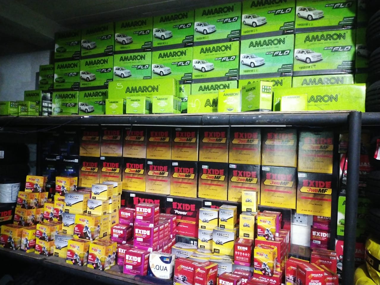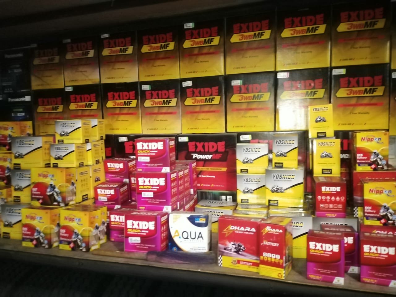 BATTERY -EXIDE, AMARON, NIPPON, DHARA, YOSHIDO, YUASA, EMTRAC, AQWA , TYRE-CEAT,FERENTINO , MRF, DSI, MAXTRAC, GITI